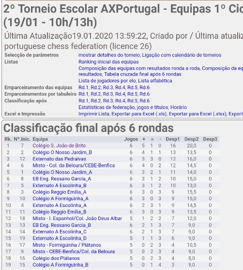No passado dia 18 de janeiro, a equipa de xadrez do 1.º CEB do Colégio, alcançou mais um 1.º lugar, num total de 19 equipas participantes, no 2.º Torneio de Xadrez Escolar da AXP (Academia de Xadrez Portugal).