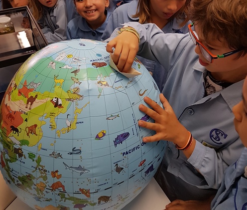 Para a abertura da Sala da Esfera, as atividades do Núcleo das Ciências permitiram verificar que o Planeta Terra tem cerca de 70% de água e que nele há um só Oceano (pois todas as bacias oceânicas estão ligadas umas às outras).