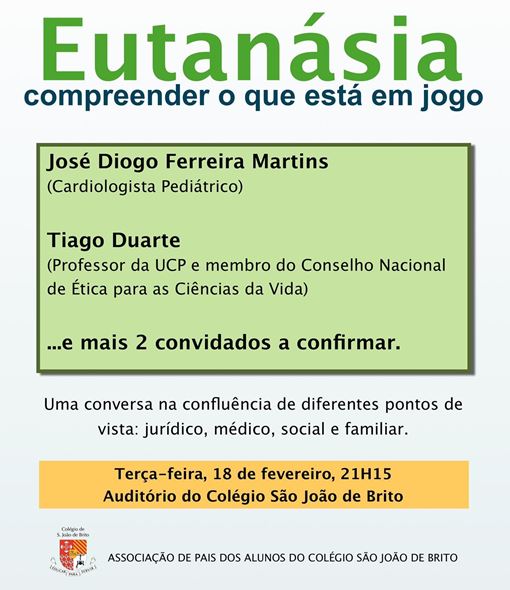 A Associação de Pais dos Alunos do Colégio de São João de Brito sentiu-se compelida a tomar parte da discussão pública, em curso, sobre o tema da Eutanásia, em vésperas da sua discussão na Assembleia da República.